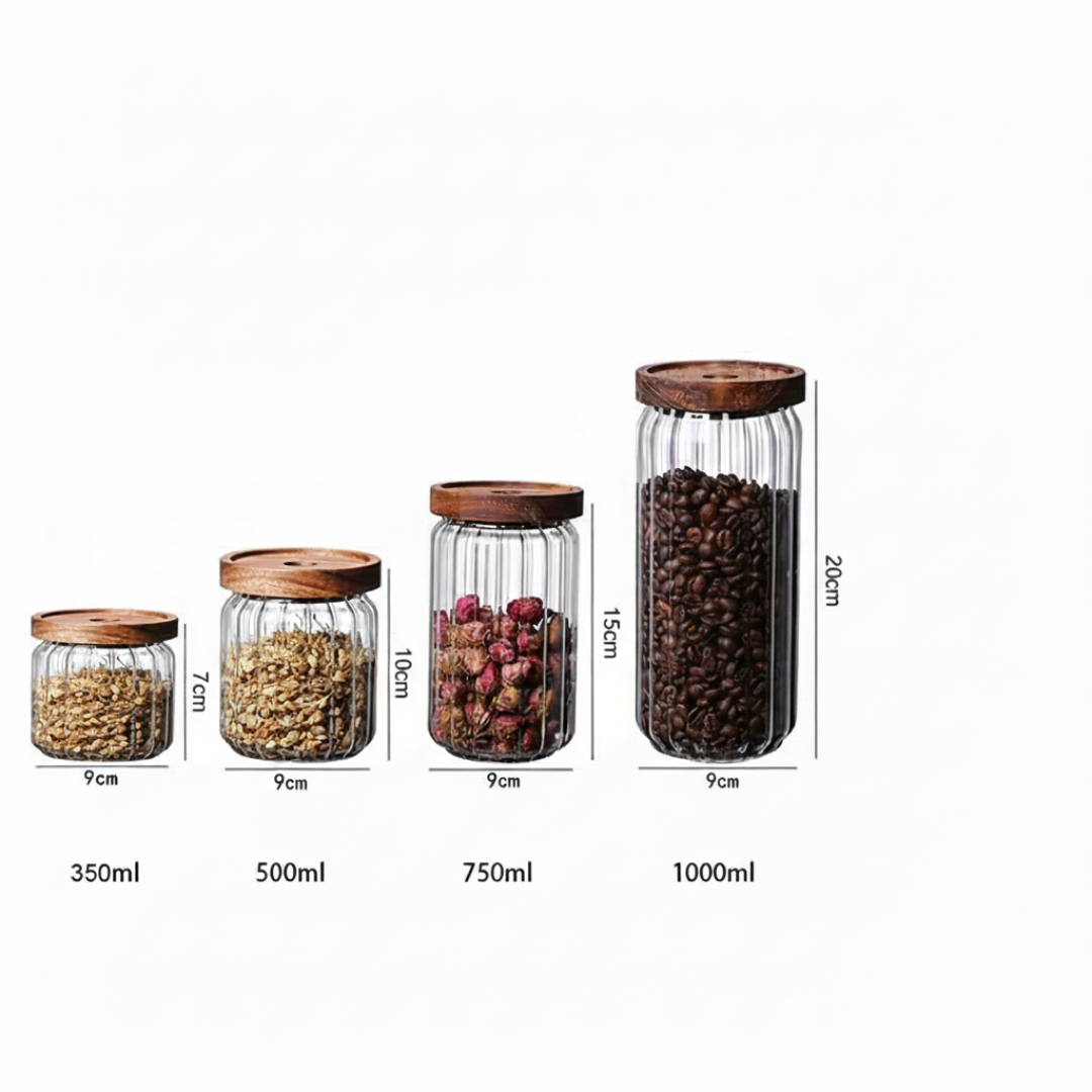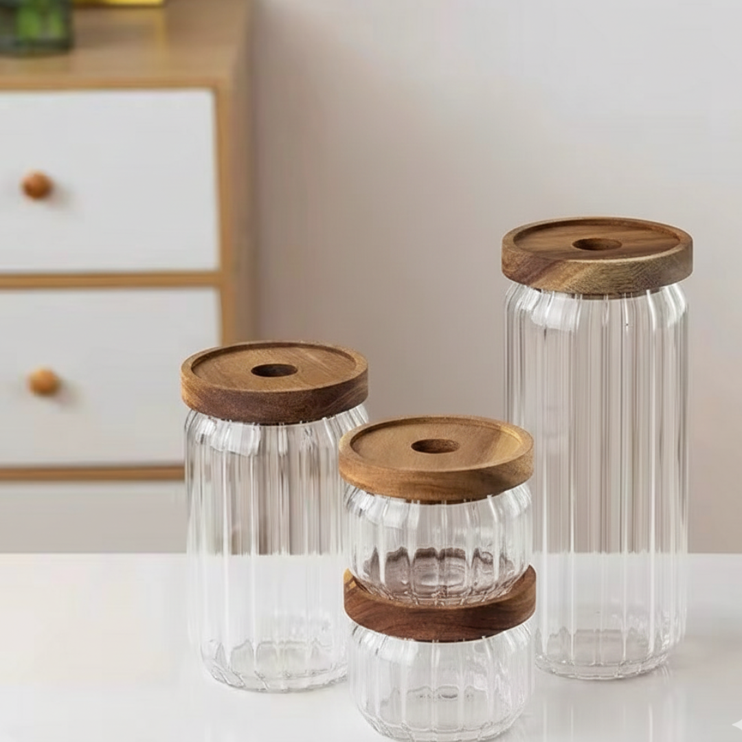 Renueva y organiza tu cocina con nuestro exclusivo set de cuatro tarros verticales rayados en diferentes tamaños. Diseñados para combinar funcionalidad, durabilidad y un estilo sofisticado. Elaborados en vidrio borosilicato.