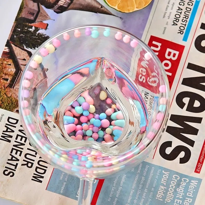 Ahora también disponible tazas de corazón en vidrio doble pared con bolitas de colores que se mueven al agitar la taza!